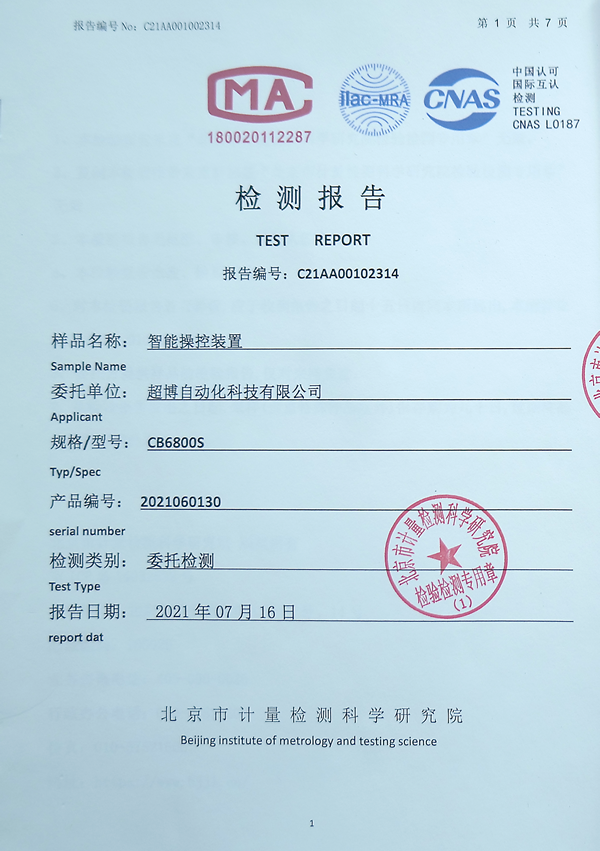 智能操控裝置檢測報告