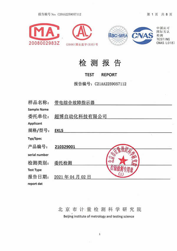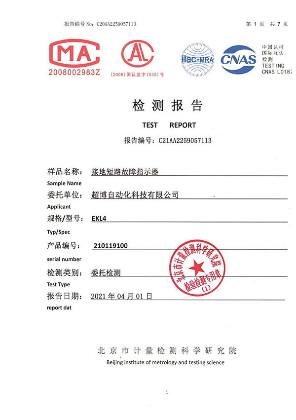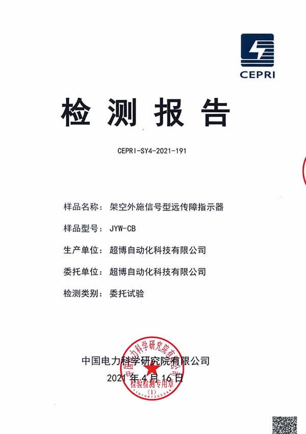 架空外施信號型遠傳故障指示器檢驗報告