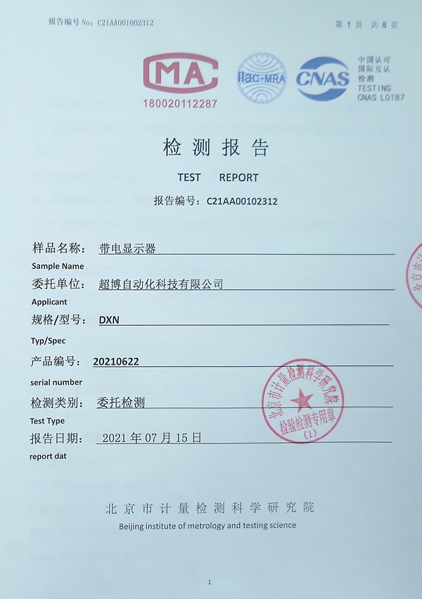 帶電顯示器DXN檢測報告