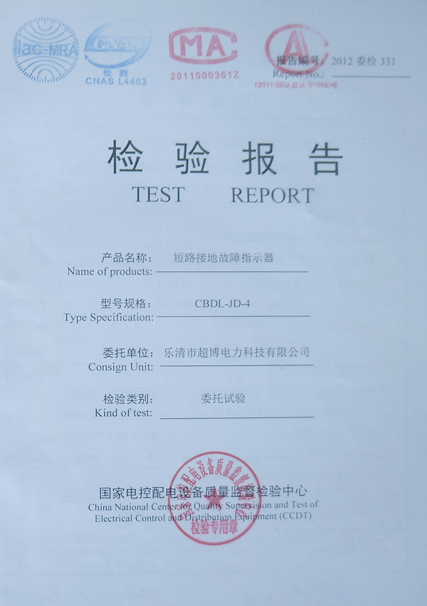 短路接地故障指示檢驗報告
